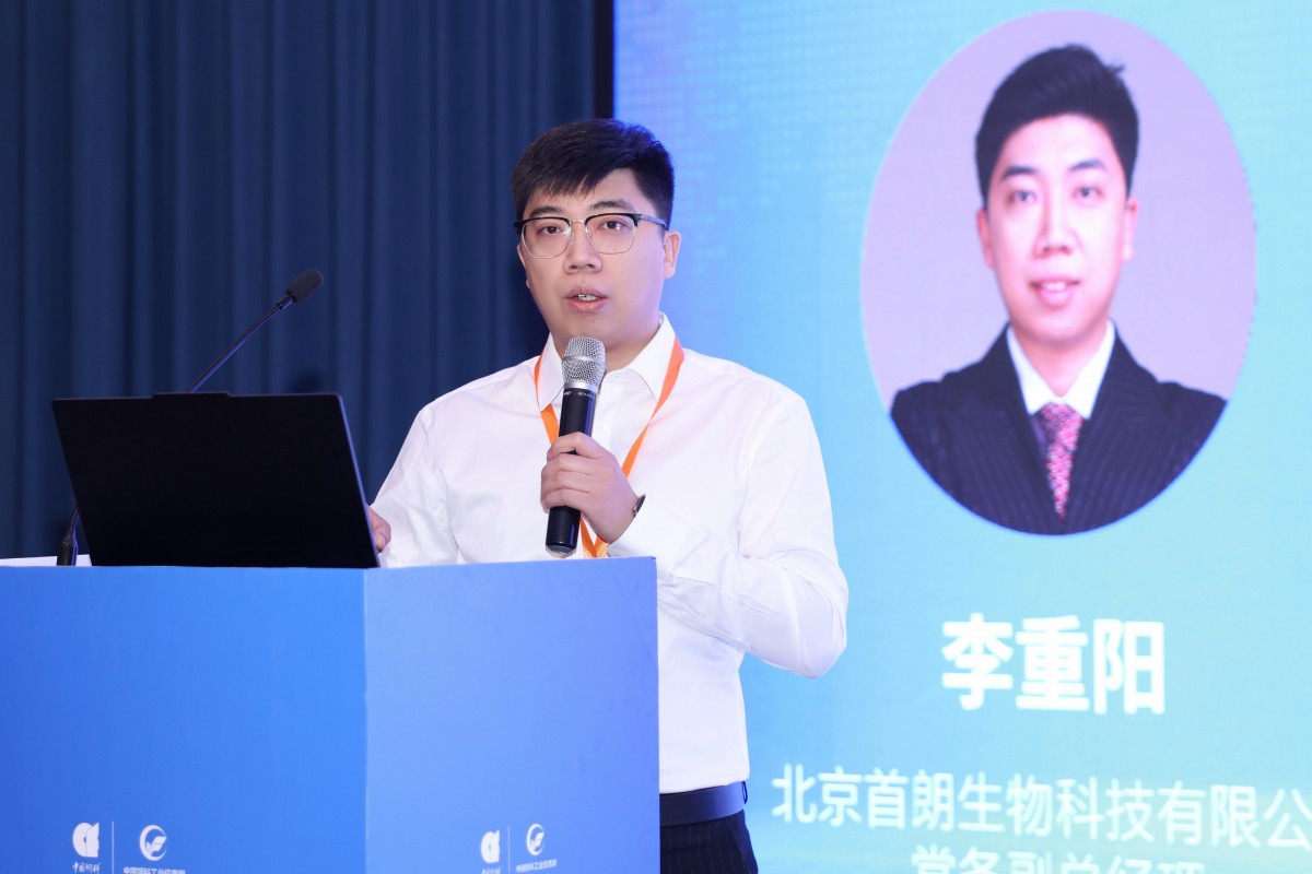 北京首朗生物科技有限公司常務副總經理李重陽作題為《一碳氣體為原料合成的微生物菌體蛋白作為飼料原料使用效果介紹》的報告。